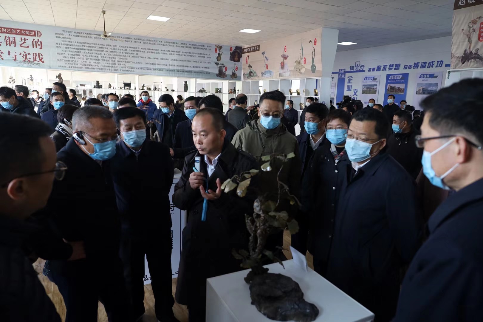 1月12日下午,中共銅陵市委十屆十四次全體(擴(kuò)大)會(huì)議期間,市委書(shū)記丁純,市委副書(shū)記、市長(zhǎng)胡啟生及各市直部門(mén)、開(kāi)發(fā)園區(qū)和縣區(qū)主要負(fù)責(zé)人等近百人,現(xiàn)場(chǎng)觀摩銅官府銅藝產(chǎn)業(yè)園。全體委員還集中參觀了全國(guó)景泰藍(lán)職業(yè)技能競(jìng)賽參加決賽選手作品以及趙敏的寫(xiě)真銅藝作品等。