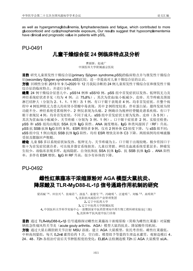 熱烈祝賀:抗風(fēng)竤“雌性紅萊菔”三篇論文入選中華醫(yī)學(xué)會(huì)·第二十五次全國(guó)風(fēng)濕病學(xué)學(xué)術(shù)會(huì)議論文匯編。
